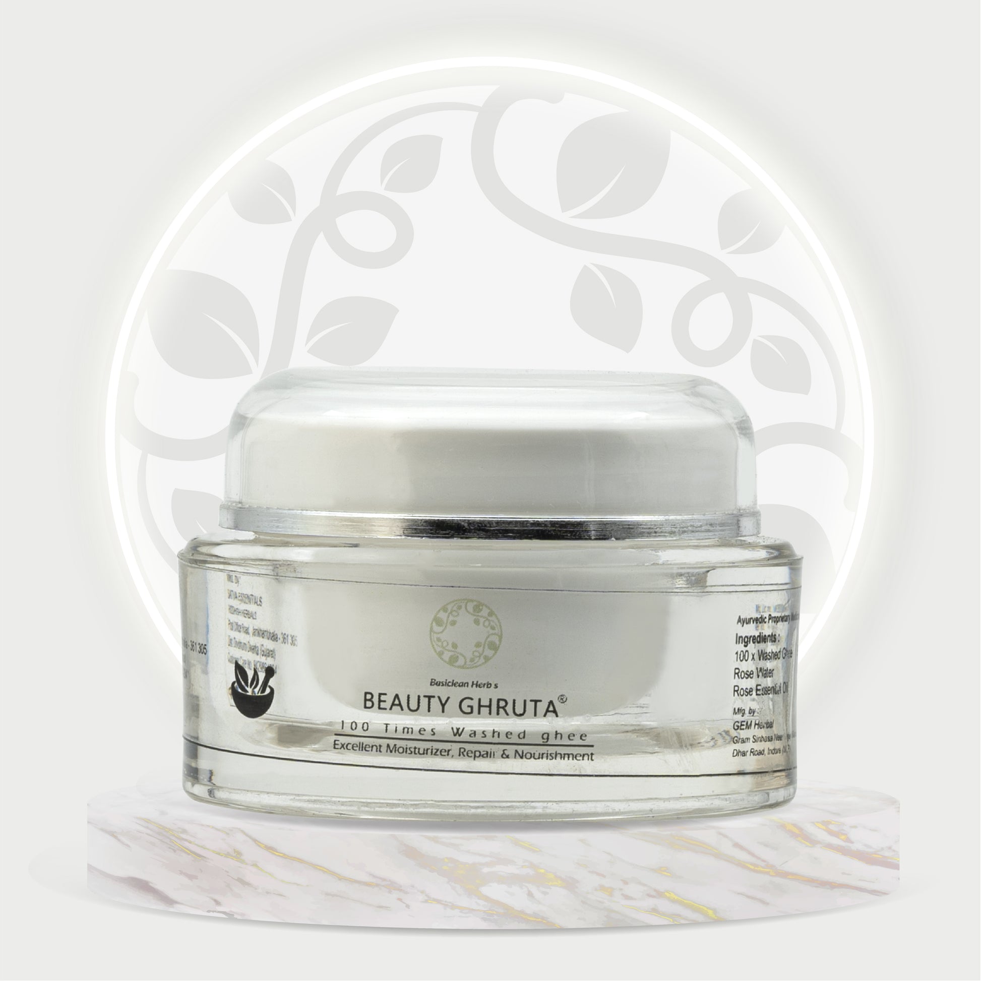Basiclean Herb’s Beauty Ghruta Cream | 100x Washed Ghee | Ayurvedic Hydration & Nourishment | 25gm | Riddhish Herbals