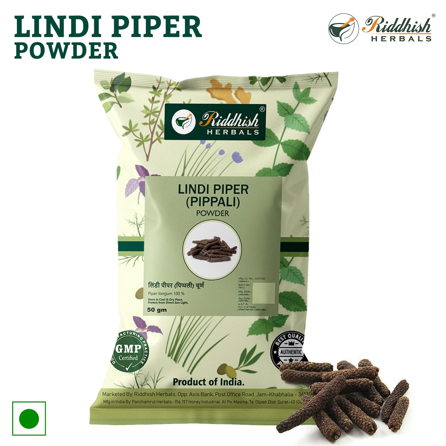- Lindi Piper (pippali) powder traditionally used to improve digestion and improves immunity