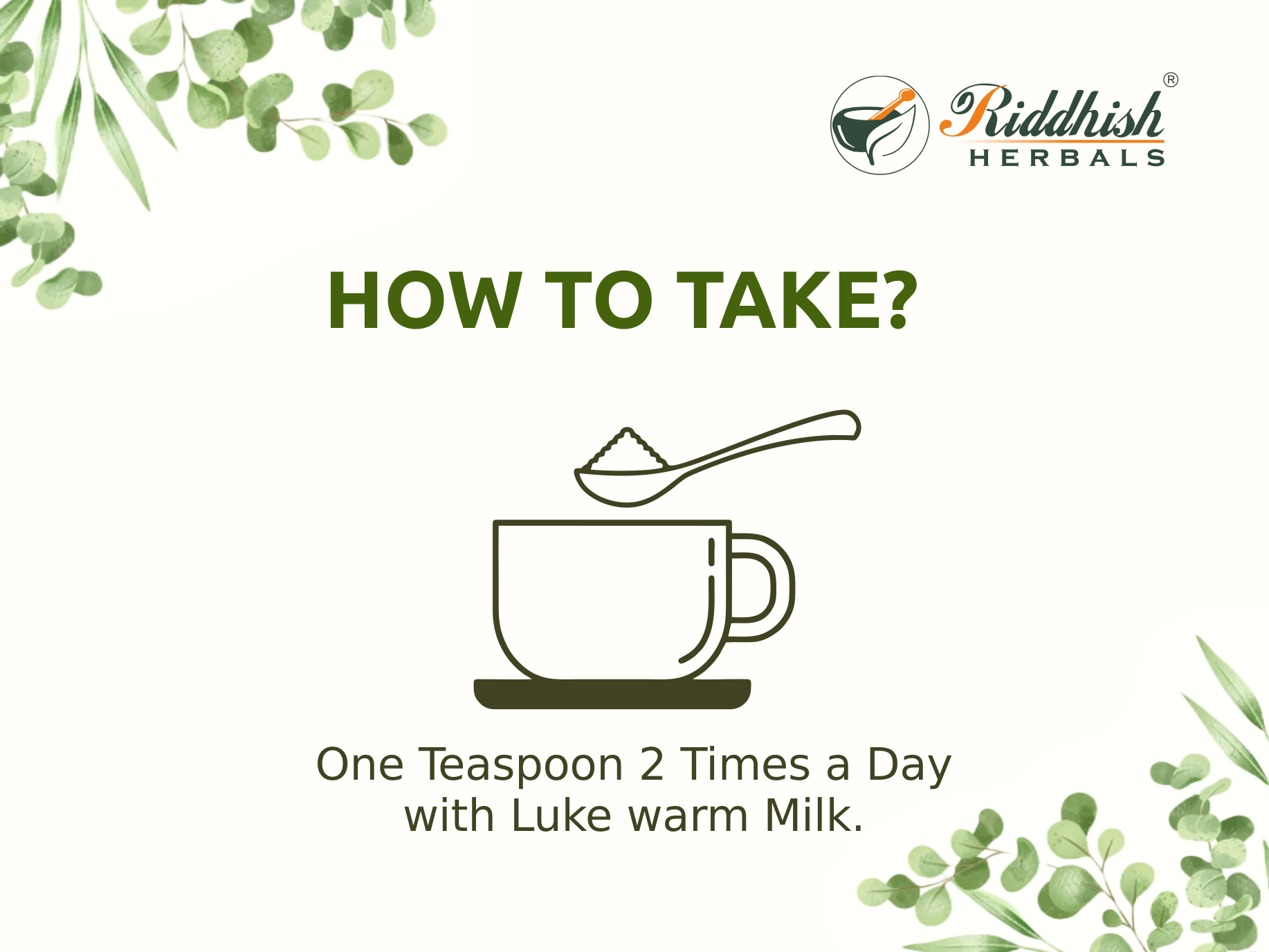 🔹 Mix with lukewarm milk or as directed by your wellness practitioner.